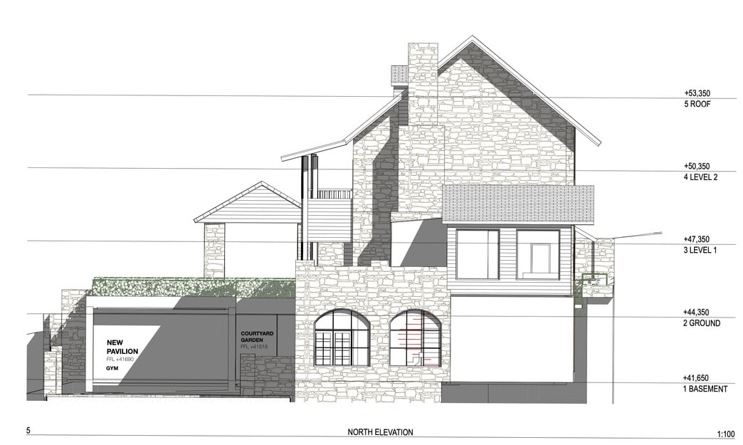 This project, in the early concept design stage, involves the subtle conversion of an existing double garage attached to a state heritage listed dwelling in Balmoral. The existing double garage is to be extended to accommodate a new gymnasium pavilion, guest quarters and a six car garage, while not being discernible from the street. The spaces are planned around a central courtyard separating the existing dwelling from the new additions and bringing light and air through the dwelling at the lower ground level, while maintaining privacy.