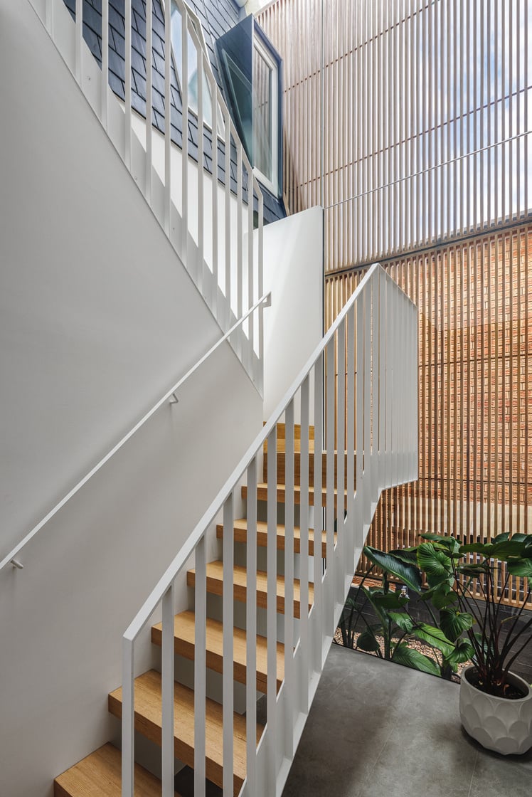 An earlier 2005 addition comprising the living area and kitchen was retained and remodelled. A new upper floor addition accommodates the master bedroom with a generous ensuite and walk-in robe, as well as a second bathroom. The old and new parts of the dwelling are separated by a double height atrium and stairwell, allowing for maximum natural light and ventilation to the core of the house. The atrium also allows the original fabric of the 1880's dwelling to be interpreted from the interior. The project was constructed by Cubiluxe Constructions and is almost complete.